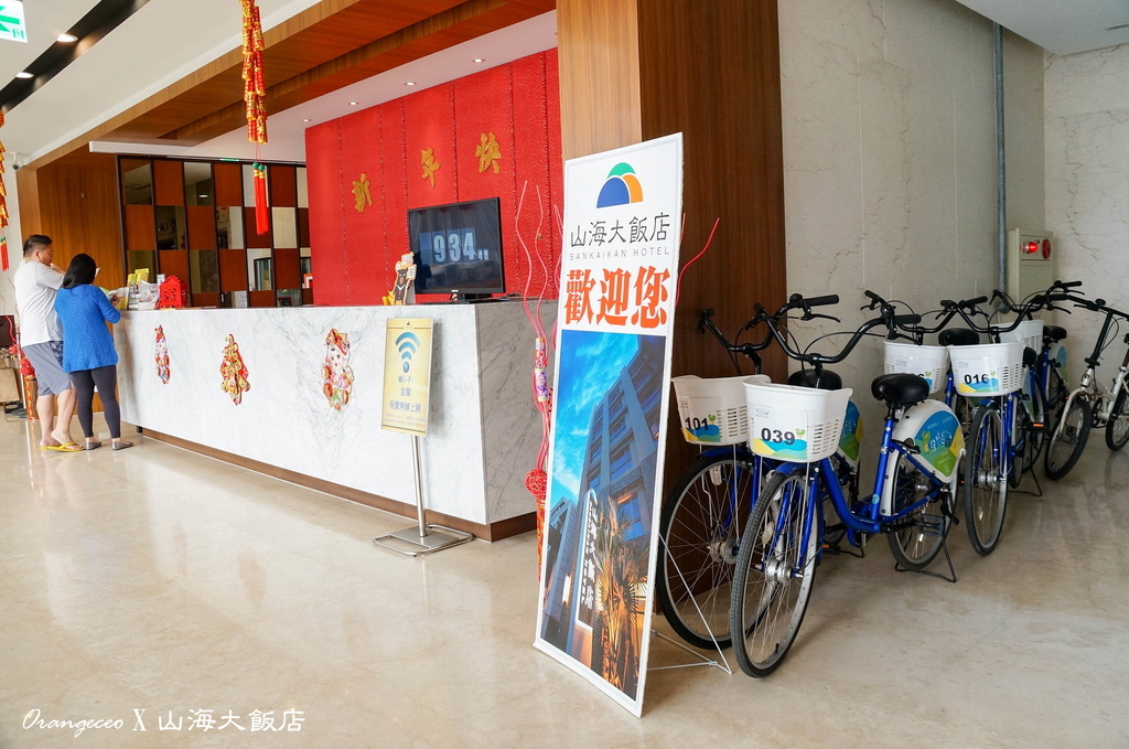 大廳櫃檯旁提供自行車讓旅客使用